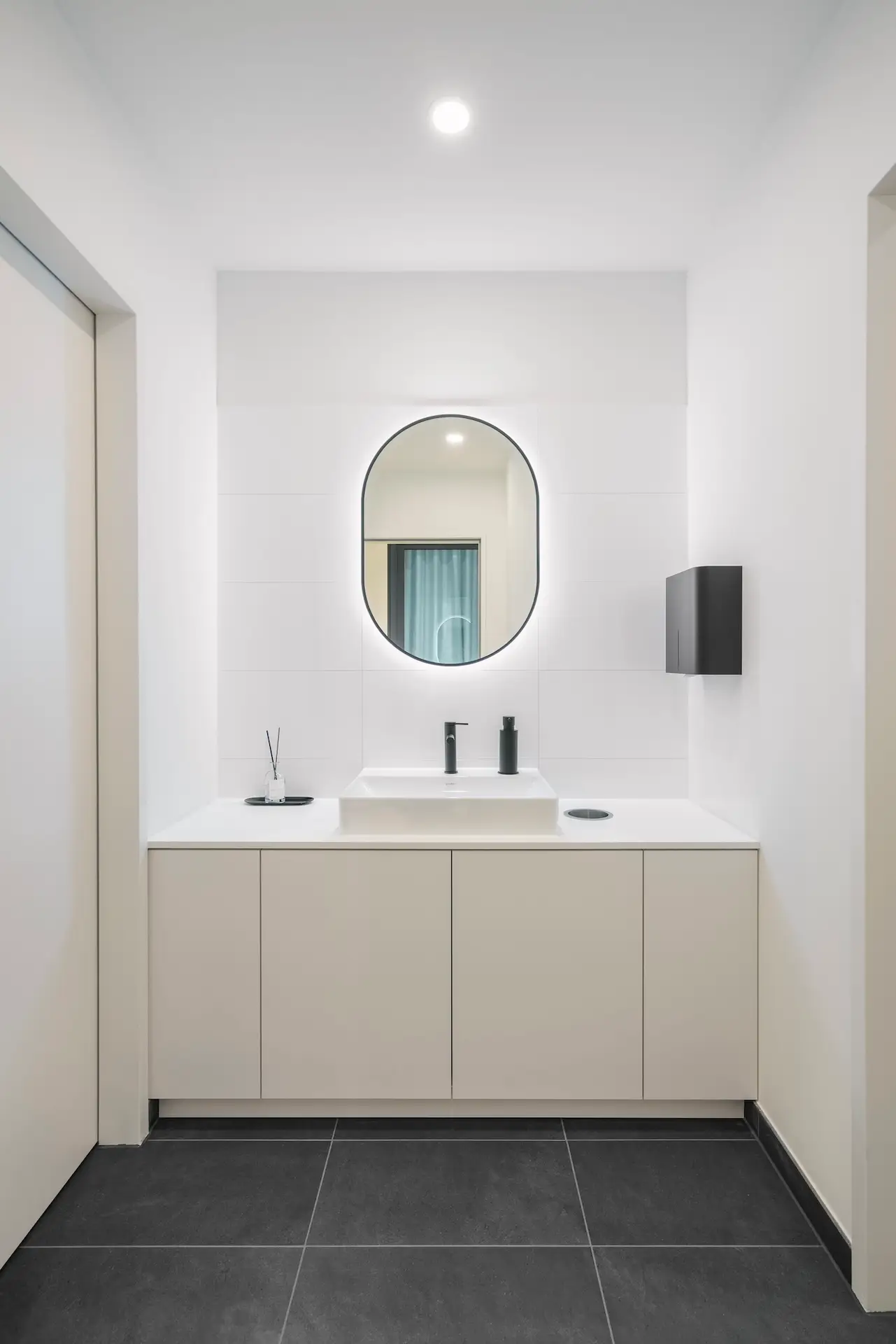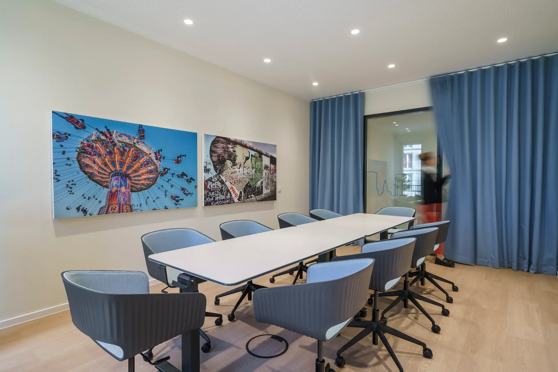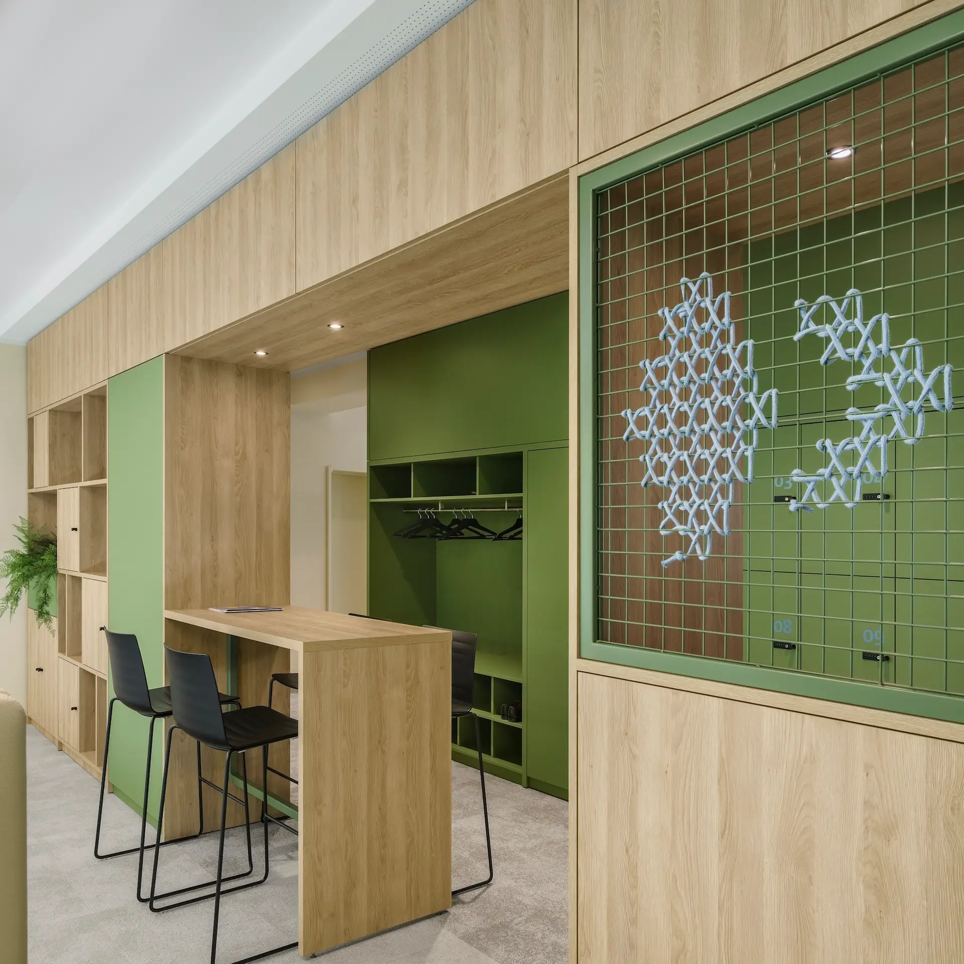 Obwohl es sich um nur 14 feste Arbeitsplätze handelte, wurden ergänzend zahlreiche alternative Arbeitsorte mit unterschiedlichen Nutzungsmöglichkeiten geschaffen. Begegnungszonen und hochwertige Aufenthaltsräume wurden gezielt integriert, um den sozialen Austausch und das Wohlbefinden am Arbeitsplatz zu fördern.