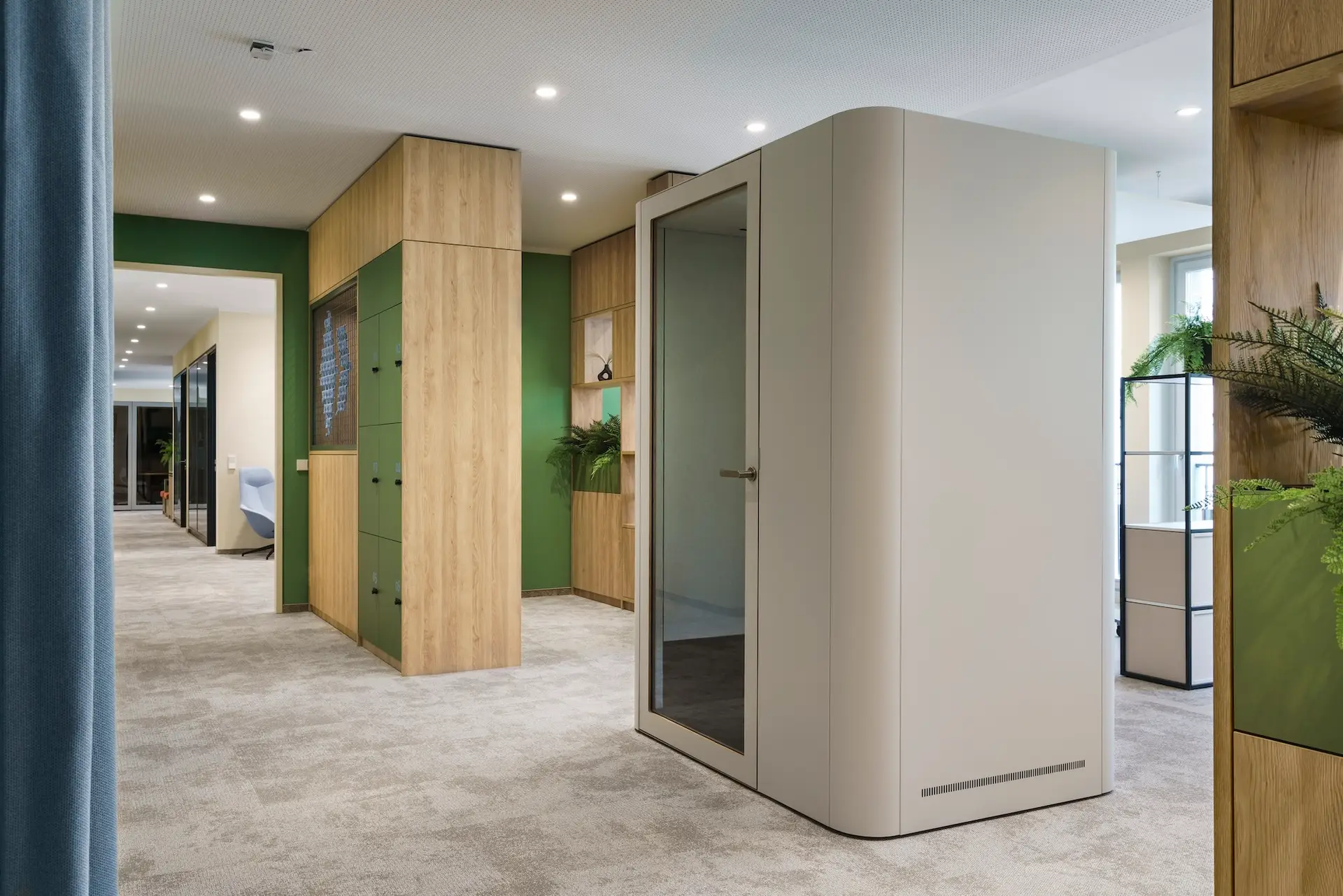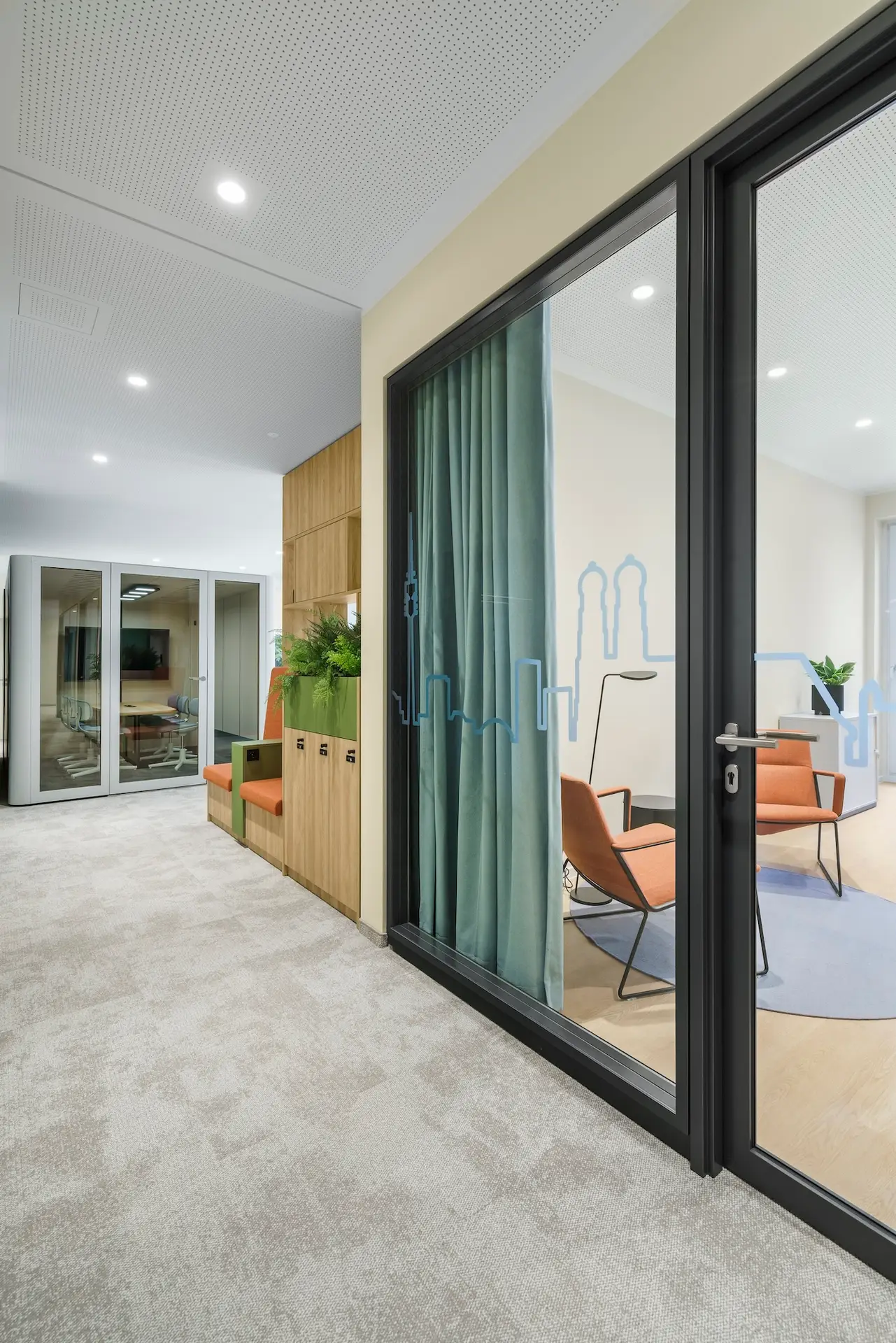 Entstanden ist eine inspirierende Bürofläche, die durch spannende Sichtachsen und ein durchdachtes Farbkonzept besticht. Die warme Atmosphäre lädt zur Zusammenarbeit ein, stärkt die Identifikation mit dem Ort und lässt Raum für zukünftige Arbeitsformen. Schon jetzt zeigt sich: Diese Gestaltung erfüllt höchste Ansprüche an Repräsentanz und Modernität.